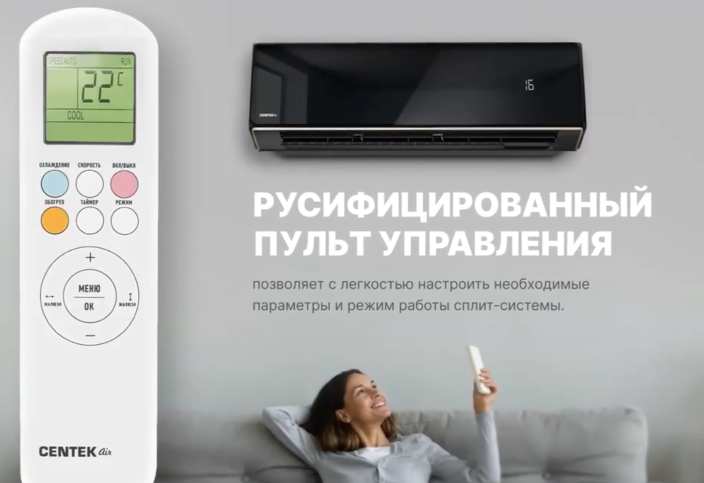 Стильный внутренний блок Centek (Сентек) CT-66AMWM-H12/4R3B(HE) имеет компактный корпус с оригинально оформленной передней панелью и эффективно обслуживает небольшие помещения, площадью до 35 квадратных метров. Такие решения особенно популярны для кухонь, спален, офисных помещений и других подобных пространств.
