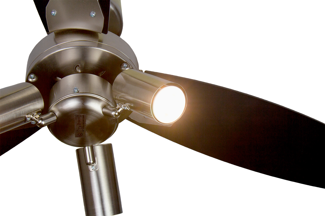 Люстра-вентилятор Dreamfan (Дримфэн) Jet Silver RC 105 оптимально подойдет для эксплуатации в помещениях различного бытового типа с целью предоставить рекуперацию теплого воздуха зимой или бесшумный охлаждающий эффект летом. Лопасти вентилятора разработаны из клееного влагостойкого МДФ, они имеют три возможные скорости вращения, удобно переключаемые при помощи пульта управления. Корпус прибора снабжен переключателем ручного типа реверса двигателя, благодаря которому изменяется направление вращения мотора.