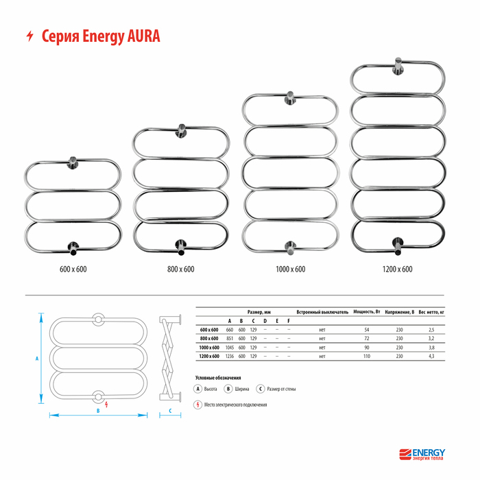 В серии Aura от Energy представлена элегантная и особенная форма электрических полотенцесушителей в виде переплетенных колец. Модельный ряд отличается высоким уровнем безопасности благодаря качественной двойной изоляции. Изделия изготовлены из высококачественной пищевой стали и используются для обогрева помещений и сушки текстиля, а также для декорирования. В моделях нет встроенной кнопки включения, чтобы легко разместить выключатель там, где будет удобно пользователю.