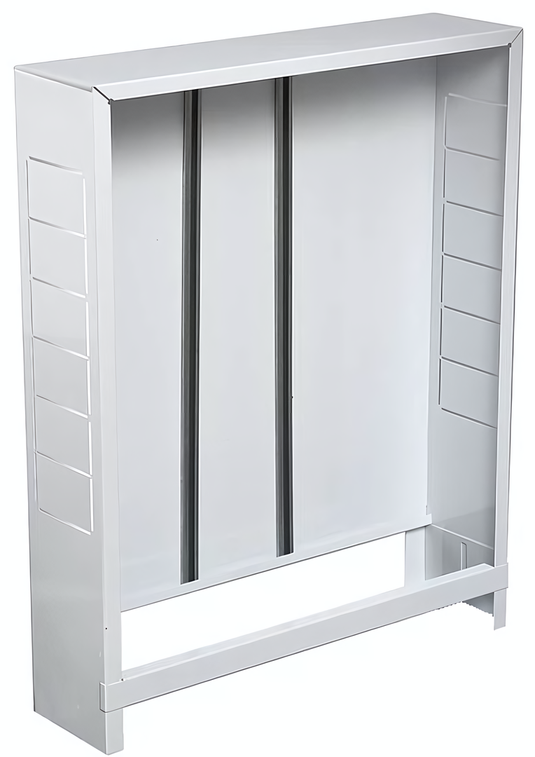 Шкаф распределительный Hoobs (Хобс) ШРН-3 на 8-10 выходов отлично подходит для сокращения использования пространства при установке оборудования в системах отопления и водоснабжения, сохраняя при этом стиль помещений. Установленный на фасаде здания или на специальном кронштейне, он позволяет эффективно управлять температурой в различных зонах здания.