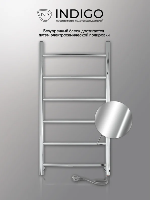 INDIGO (Индиго) Arc б/п (el) 70/30 Полиров. – это полотенцесушитель лесенка, сделанный из нержавеющей стали. Модель имеет эргономичный дизайн и компактные размеры. Кроме того, реализована возможность для скрытого монтажа подключений (провод можно вывести справа или слева). Поверхность полотенцесушителя прогревается до +50 градусов, что исключает риск обжечься.