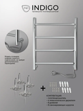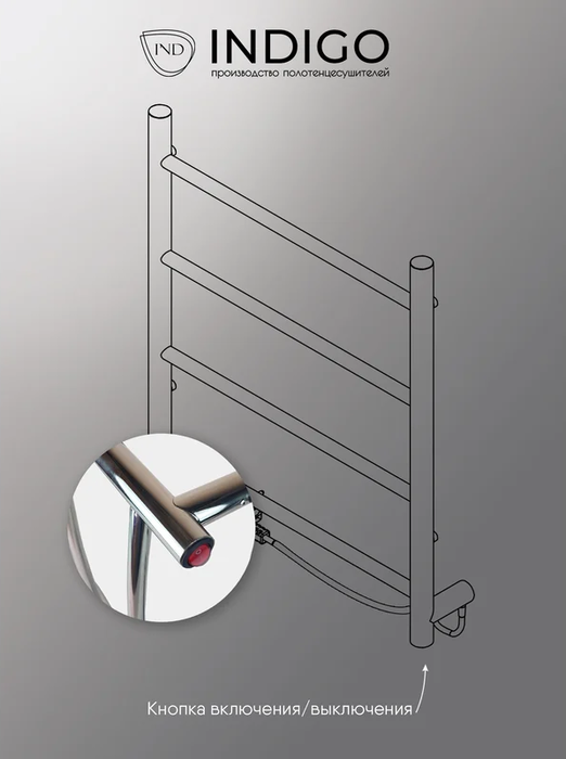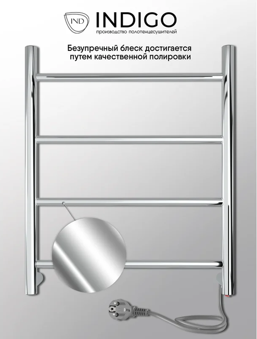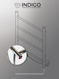 INDIGO (Индиго) Line б/п (el) 50/40 Полиров. – это электрический полотенцесушитель для ванной комнаты. Конструкционно модель выполнена из нержавеющей стали в форме плоской лесенки. В нижней части правой стойки находится кнопка, включающая и отключающая нагрев. Модель совмещает в себе стиль и эффективность.