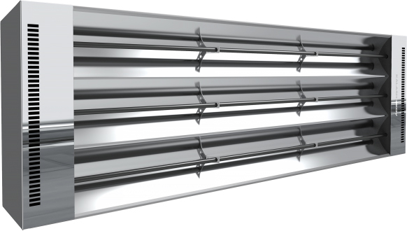Серия KIRH-E…P представлена обогревателями инфракрасного типа от компании Kalashnikov — известного отечественного производителя теплового оборудования. Семейство включает устройства с панелью из анодированного алюминия и открытым трубчатым электронагревателем. Приборы имеют защиту от влаги и пыли IP20 и соответствуют классу электробезопасности I.