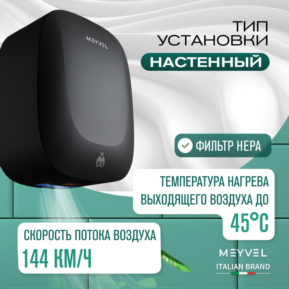 Итальянская торговая марка MEYVEL представила на рынок широкий ассортимент электрических сушилок для рук. Модели доступны в разных дизайнах, имеют различную производительность и тип обдува. Туалетное оборудование выполнено в прочных корпусах из пластика и металла, надежно защищено от попадания влаги.