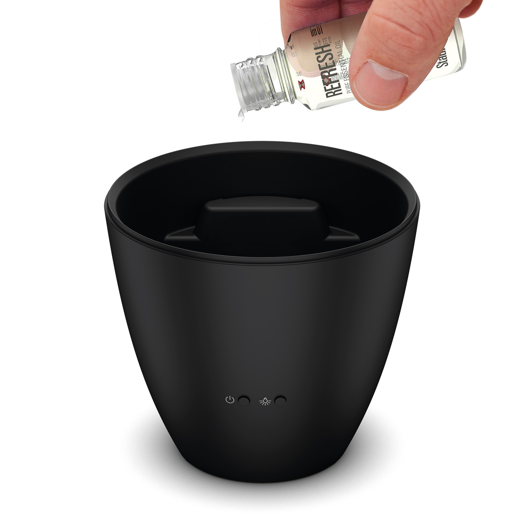 Z-002 Zoe black Stadler Form (Штадлер Форм) - в этом бесшумном и энергоэффективном диффузоре ароматов используется ультразвуковая технология с эфирными маслами, чтобы оптимально сидеть в комнате и рассеивать их в виде сверх мелкозернистого тумана на срок до 10 часов, когда это необходимо.