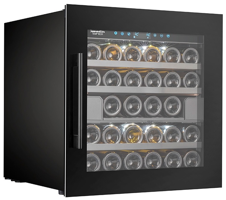 Винный шкаф Temptech (Темптех) SOMZ60DB изготовлен в стальном корпусе и встраивается в колонну. В качестве системы охлаждения в нем задействован энергоэффективный и малошумный компрессор. Дверца со стеклопакетом и УФ-фильтром при необходимости перенавешивается. Сенсорная панель управления обеспечивает контроль температуры в обеих зонах.