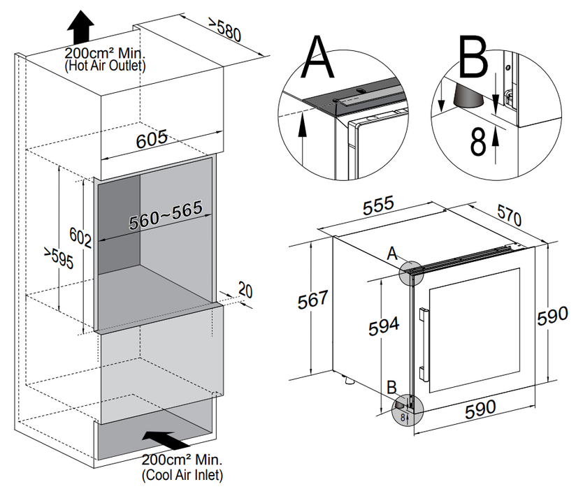 Встраиваемый винный шкаф 22-50 бутылок