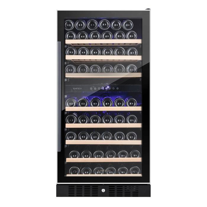 Винный шкаф Temptech (Темптех) WP120DCB - это отличное решение для ресторанного или отельного бизнеса, которое обеспечит правильное хранение и подачу разных сортов вина. Общая вместимость холодильника составляет 94 бутылки, которые располагаются на 8 выдвижных полках из дерева в двух температурных зонах.