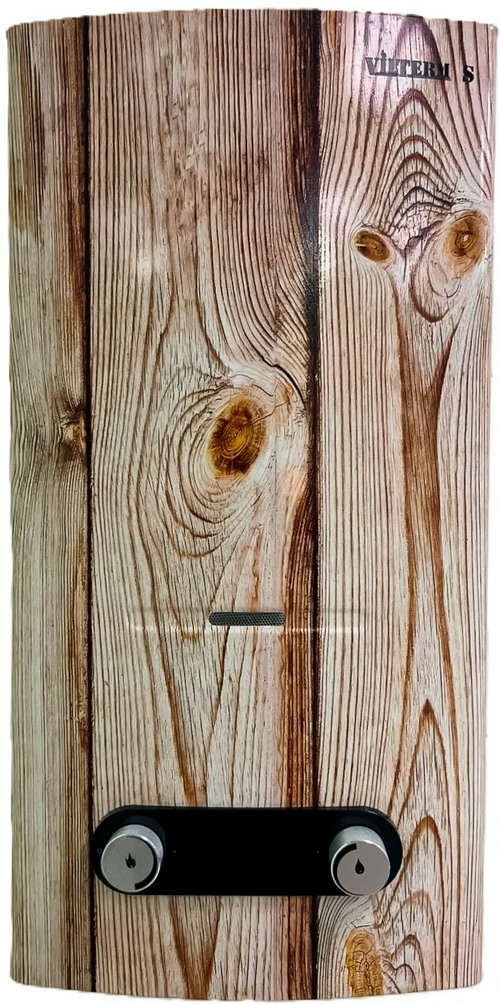 Настенный водонагреватель Vilterm (Вилтерм) S11 Дерево работает по проточному принципу за счет сжигания газа и встроенного теплообменника. Уникальный дизайн позволит гармонично разбавить интерьер кухни или другого помещения. Устройство полностью подготовлено для работы в отечественных условиях.
