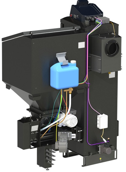 Автоматический пеллетный отопительный котел Zota (Зота) Pellet Black 16 представляет собой идеальное решение для организации эффективной водяной системы отопления в больших помещениях площадью до 160 квадратных метров. Одним из ключевых преимуществ данного агрегата является его большой бункер для хранения пеллет.