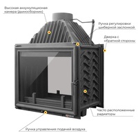 На сегодняшний день дровяные топки для каминов изготавливают преимущественно из чугуна. Чугунные модели отличаются хорошей теплоемкостью, а также совершенно безопасны в эксплуатационном плане. Конструкция топки представляет собой сочетание следующих элементов: