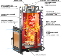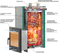 Дровяная печь Эверест Легкий пар Профи Ковка (закрытая каменка из нерж. стали)