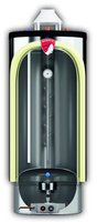Газовые накопительные водонагреватели с объемом бака 50 л могут устанавливаться для подачи горячей воды в водозаборные точки на кухне или в ванной комнате. Такого объема воды будет достаточно для мытья посуды или однократного экономного принятия душа одним членом семьи, поэтому водонагреватели с объемом накопительного бака 50 литров целесообразно устанавливать в маленьких квартирах с количеством проживающих в них не более 1-2 человек или на дачах или загородных домах с сезонным проживанием, где потребности в горячем водоснабжении невелики.