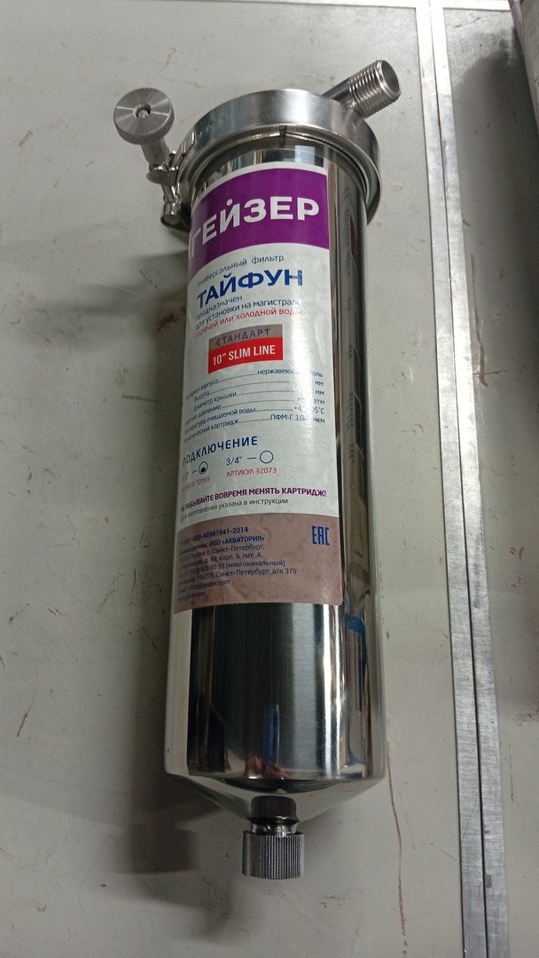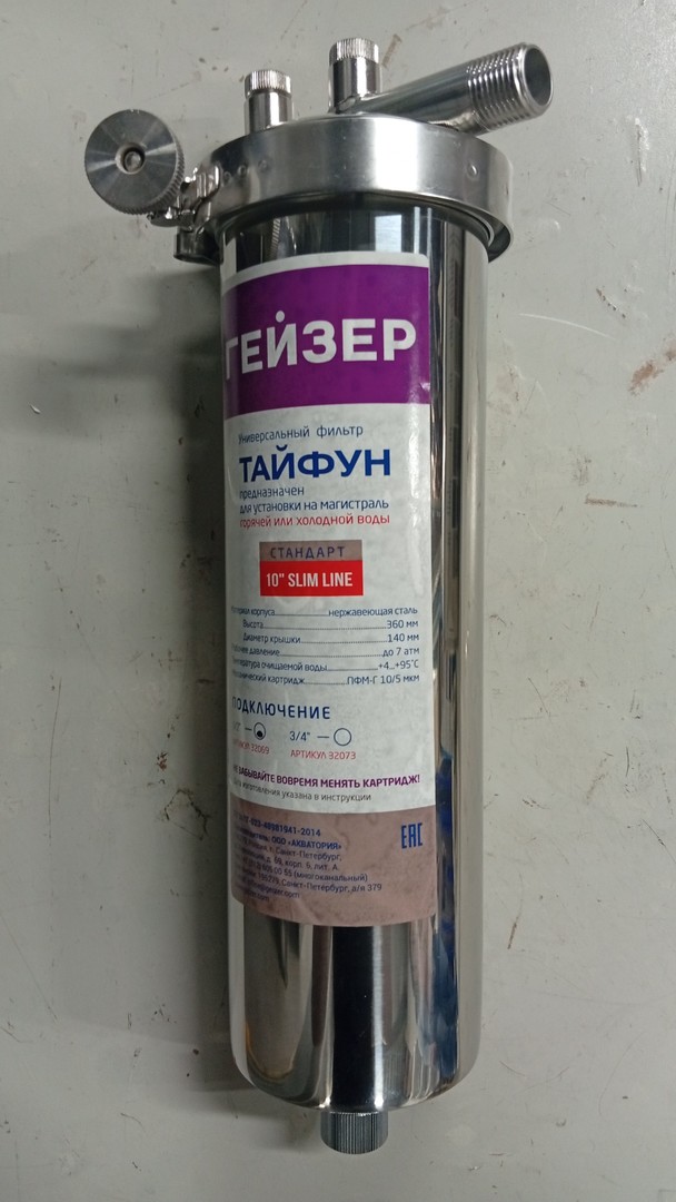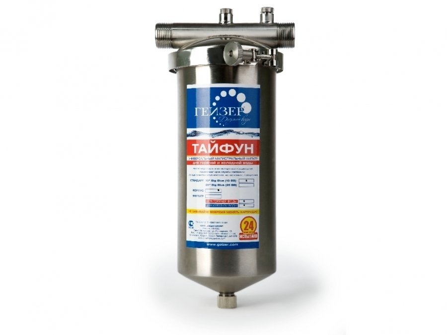 Современный водоочиститель Гейзер Тайфун 10SL 1/2" предназначен для тонкой обработки преимущественно горячей