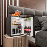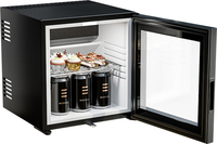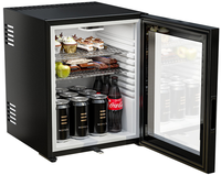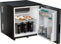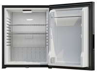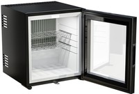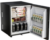 - Абсорбционные мини-бары охлаждаются за счет абсорбции тепла. Они практически бесшумны, что делает их отличным выбором для гостиничных номеров и офисов, где важна тишина. Эти устройства более энергоэффективны, но охлаждают медленнее по сравнению с компрессорными аналогами.