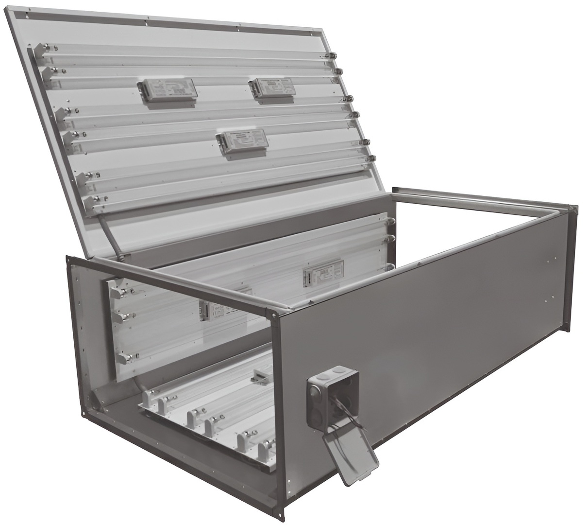 Бактерицидная секция ВЕТРАН БСК.500х300.3.=1400(оц10.2/2) заключена в прямоугольный корпус из листовой оцинкованной стали, толщина стенок в котором составляет 1 мм. Глубина корпуса равна 1400 мм, класс защиты корпуса – IP40. Климатическое исполнение бактерицидных ламп соответствует положениям ГОСТ 15150- 69.